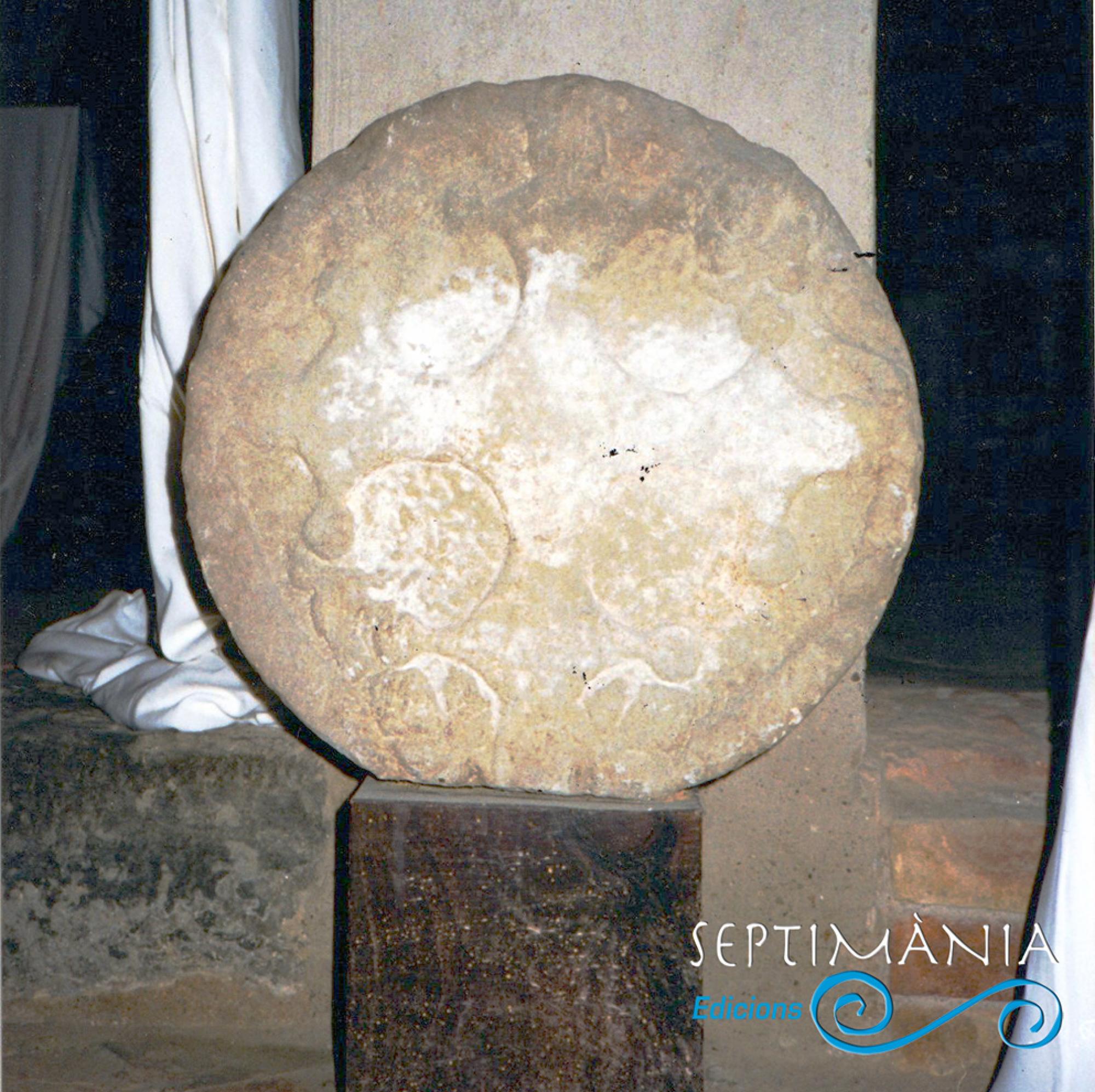 Altra llosa sepulcral de tipus gremial a nom del flaquer Jaume Mondo i dels seus. Veiem també, de manera ben esquematitzada però entenedora, la pala per posar i treure el pa al forn. Ser flaquer en aquells temps, tampoc era poca cosa...