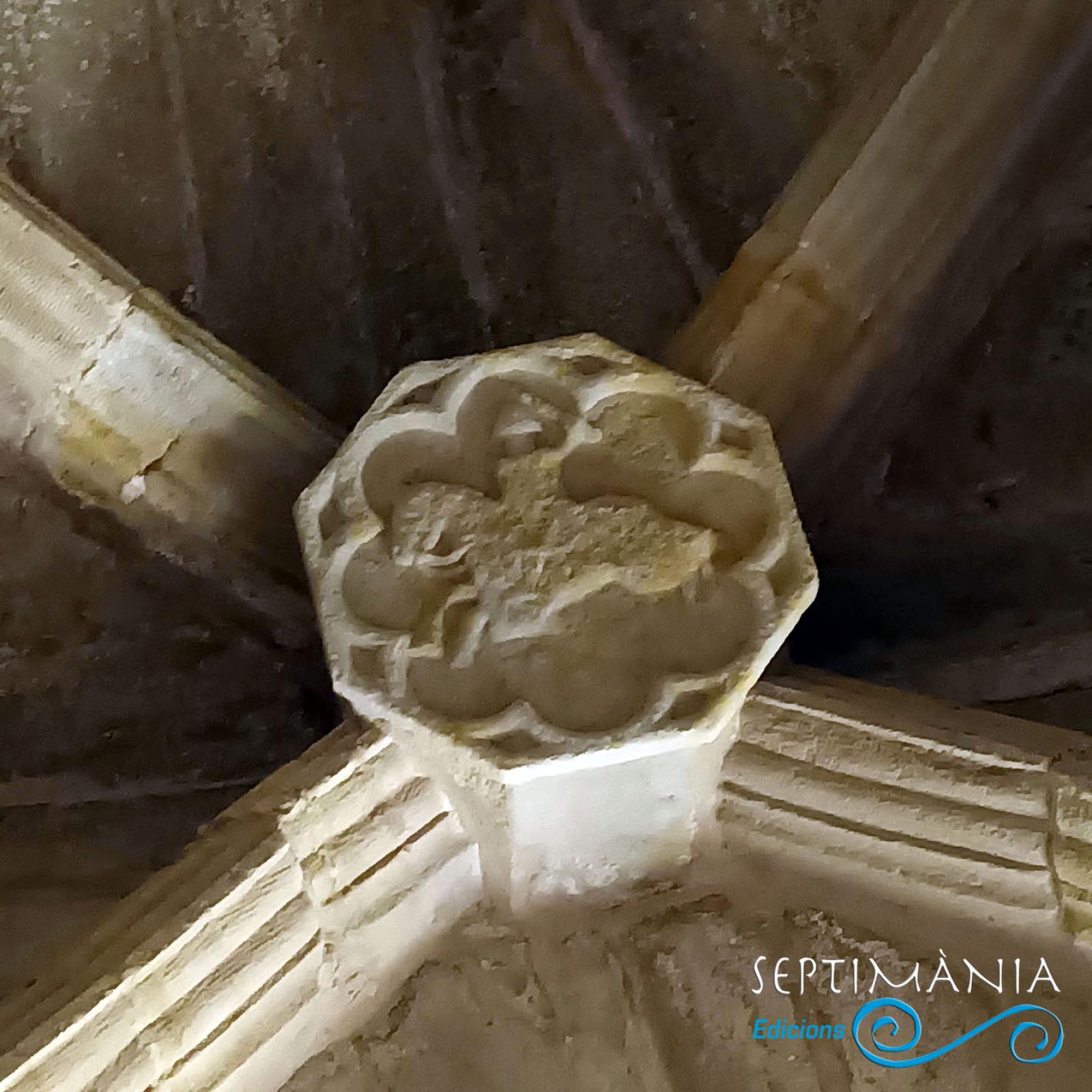 Timpà de 'porta de les dones' de l'església de Sant Miquel, accés per l'esquerra del creuer, amb una iconografia entre ben curiosa i malauradament, ja molt degradada (motius molt interessants arbre de la vida, fruits, creus, flors etc.
