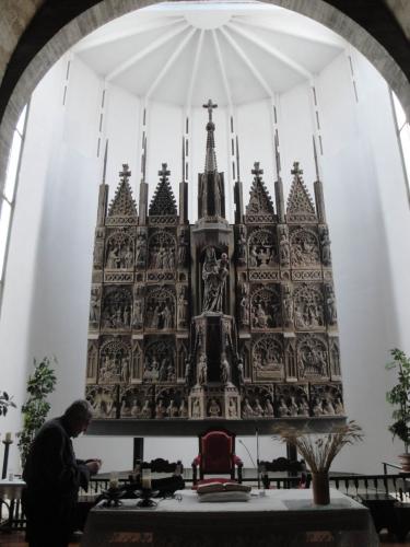 A llevant del castell observem l'antiga església de Santa Maria que substituÃ, al s. XIV a l'anterior, que era d'estil romà nic. Encara són presents els escuts de Foix i de Navarra que ornen el portal d'estil gòtic del s. XV. D'aquesta església es conserven un parell de retaules. L'un. El podem veure a l'església de Sant Miquel, i l'altre al Museu Episcopal de Vic.