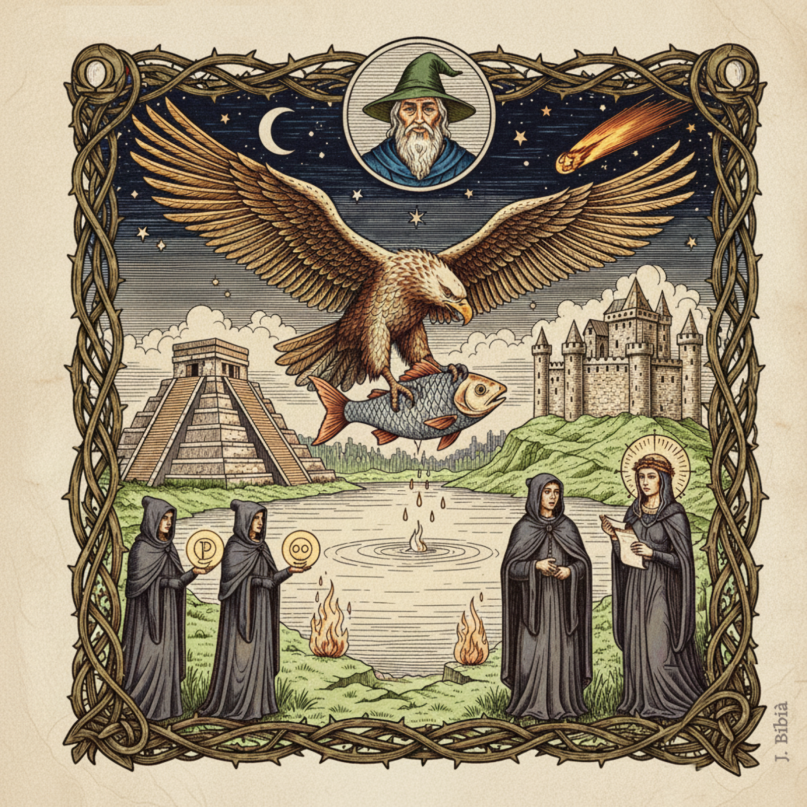 Grup de càtars a la foguera i inquisidor a primer terme. Els parents dels inculpats havien de costejar les despeses del procés i del macabre mètode, pagar la la fusta, la llenya i la resta de preparatius. Cal dir a més amés que, tot aquell que participava aportant llenya, es beneficiava d'una sèrie d'indulgències.