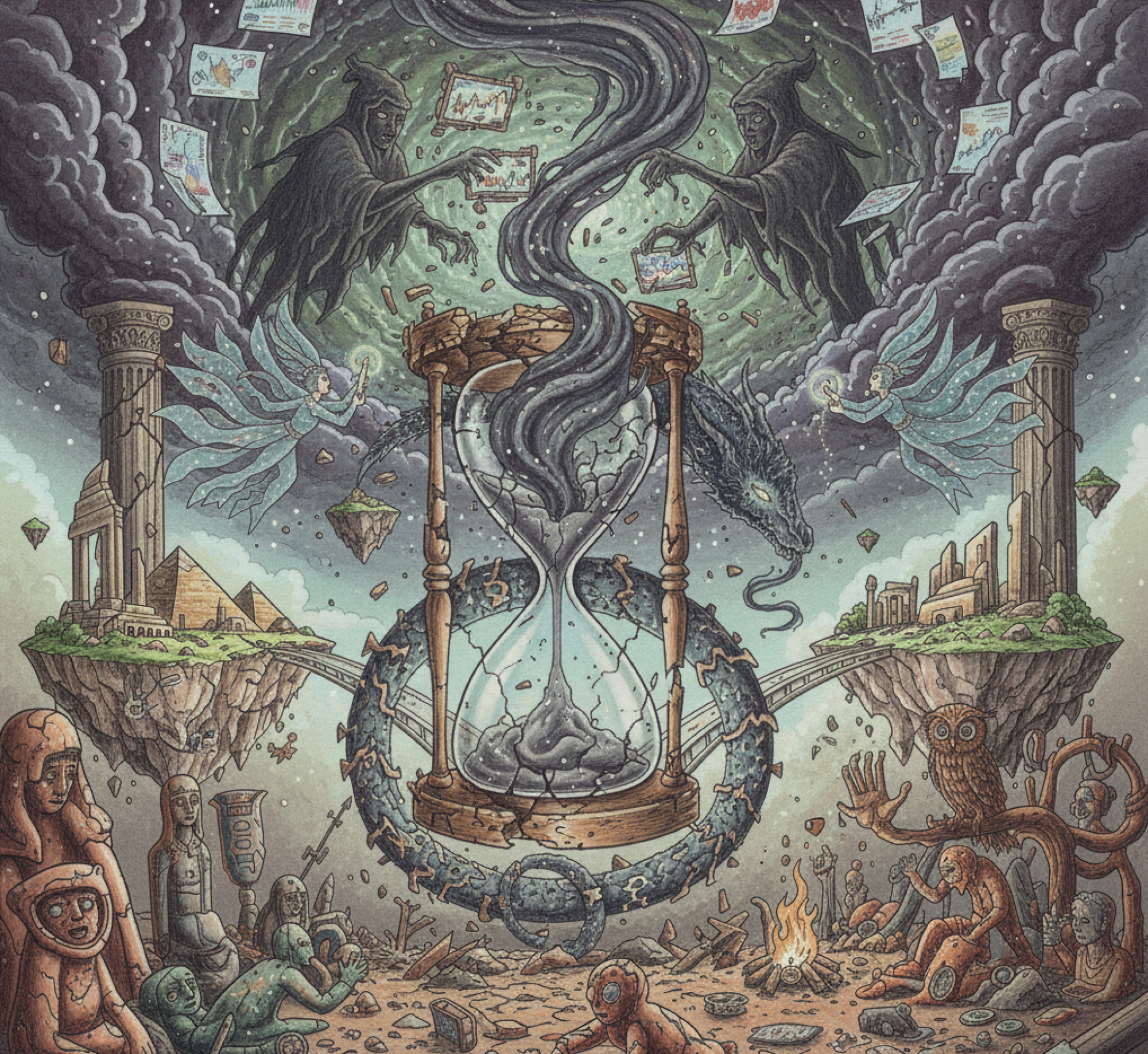 Davant el poc profit que n'hem tret de les seves meritòries vides, els déus han desaparegut. La pedra, el fang, l'ivori, la pintura, el bronze, la fusta, el plàstic de les botigues de souvenirs... són muts i lluny de cap ànima. Ja no tenen ni la categoria de la còpia de còpia que menyspreava Plató. Ja no ens calen Sants. Prescindim dels herois i ara, idolatrem els lladres en el desert de confusió on ningú ja no ens promet cap terra. Ja no forgem els dies amb la suor, sinó amb una estranya barreja de patiment i por. Una massa inconsistent i deforme amb la que no es pot modelar res més que l'anar fent. I això no té cap forma. La tendència és ser relatiu. Improvisar [com el mussol a la fosca des del seu cau], perquè les previsions també han fet fallida. Els oracles treuen fum d'esgotament. I els mercaders especulen cobdiciosos amb la por que premeditadament ens administren. La nova religió és aquesta: la por frívolament encoberta. No omplim els temples però celebrem el culte en les nostres llars en un onanisme de formigó i acer. Ja fa temps que hem sotmès a les bèsties, que hem après a deformar la natura, i ara, a nosaltres. Ens hem desfigurat malgrat les reparadores promeses del Botox, del Diazepan i la Viagra. Els deus i els dimonis però, també ens feien por, només que ara ja hem après a ignorar-los. Ja som més poderosos que ells. Som els fills deformes dels déus oblidats. Som una còpia animada. Còpia de còpia de la pedra, de fang, d'ivori, de pintura, de bronze, de fusta i del plàstic de les botigues de souvenirs que mai no compra ningú. Ni els mateixos Déus, perquè no volen recordar allò en què havien cregut. (J.B.)